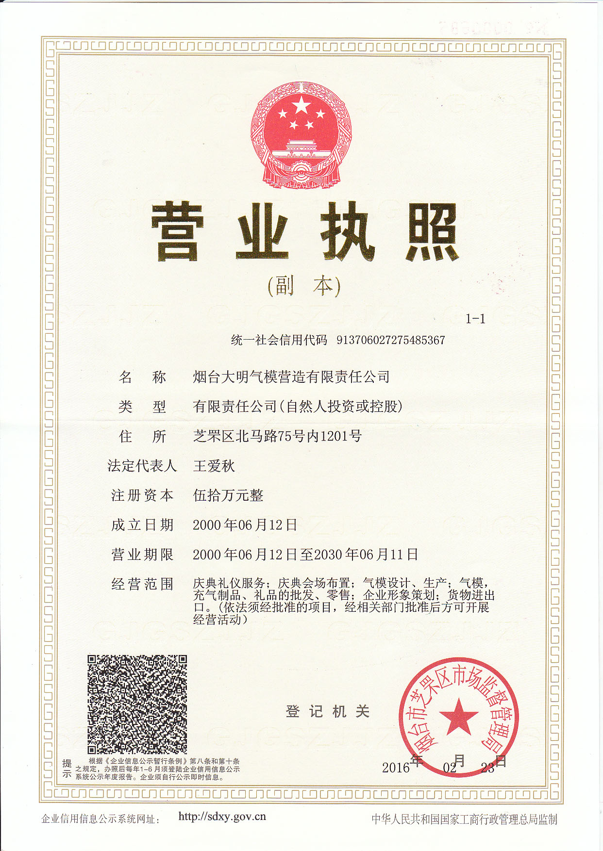 公司擁有大明和哇哈兩個品牌,20余年專注創造上萬種氣模藝術,公司秉承匠心,追求創新卓越。擁有多名設計師,采用3D立體造型設計和平面高清熱轉印噴繪打印技術,進口精細縫紉設備,開發多種適合不同環境和效果的復合高分子化纖面料材質 ,由多年經驗的技師縫制而成,造型色彩還原度逼真、色牢度高、更結合聲光電等新媒體積水,品質效果得到國內外眾多客戶的好評。售后服務更是幫助客戶解決問題為宗旨,讓客戶省心、放心、稱心。